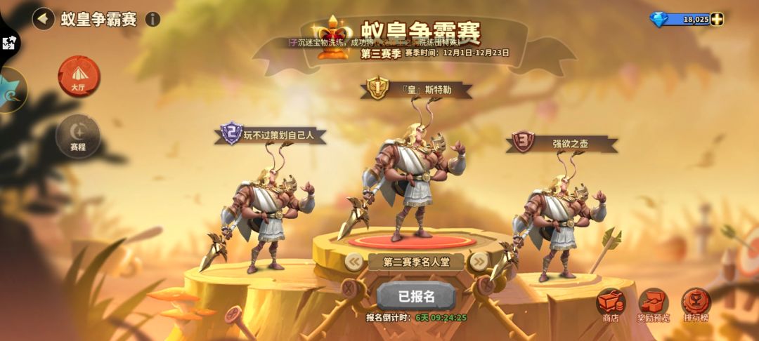 蚁皇争霸赛主要是通过攻城战的方式进行战斗,报名阶段中,若统帅的战功是世界前200名则自动报名,否则需要击败上赛季的冠军、亚军、季军的镜像。报名成功后才能开始后续的小组赛等等,本次将着重讲述如何击败三名强大的镜像。