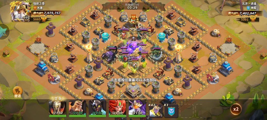 3、进攻部队尽量放在一起不用分批,不然第二批容易被分散去攻击其他建筑。