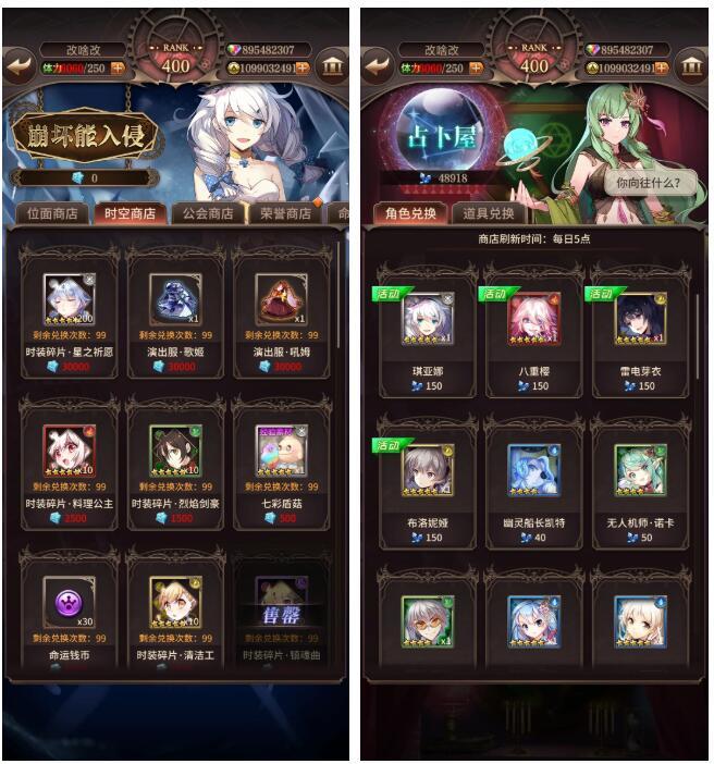 9、 修复了时空之域扫荡时不会显示获得时之币数量的问题。