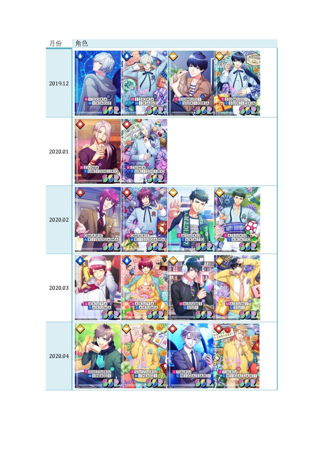 昨天放了活动SSR的图,今天把日服出的生日卡按国服顺序排一遍。(因为国服和日服生日卡发布的顺序不一样,新成员的部分生日卡实装的时间也可能和我写的不一样)。