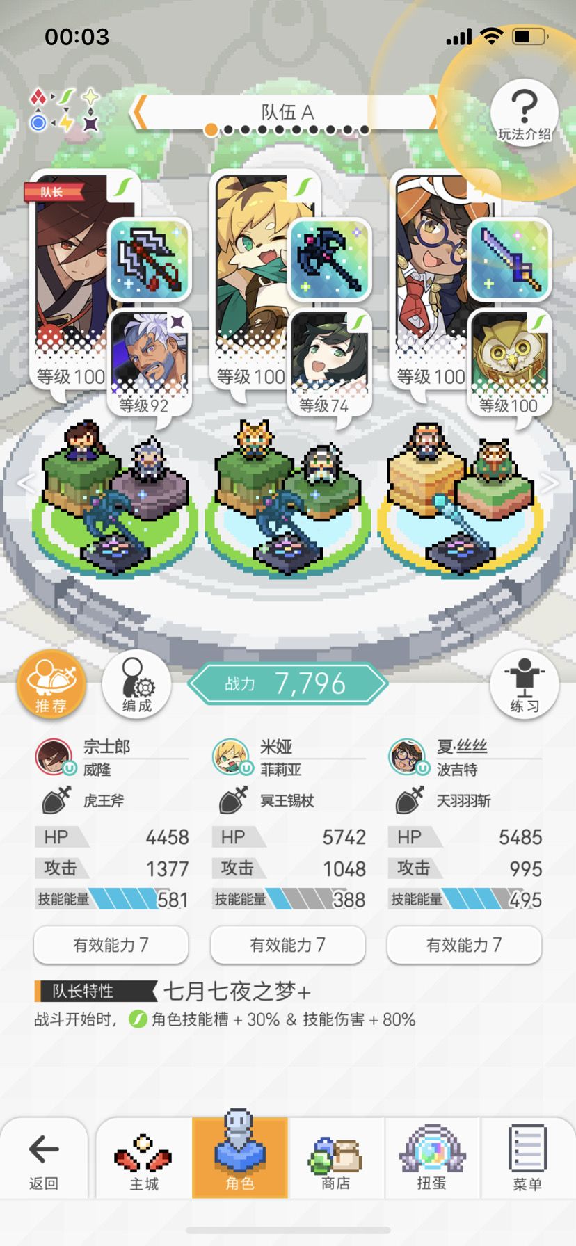 所以我并不推荐这个队伍,雷我是用四郎技风,战力碾压的,粗略感觉战力分为三档,6500可以玩,7000,强力,7500碾压,暗队我就用这个6000的光过得,光队用的传说中的暗背水,我也不知道啥意思,反正就听着很牛逼