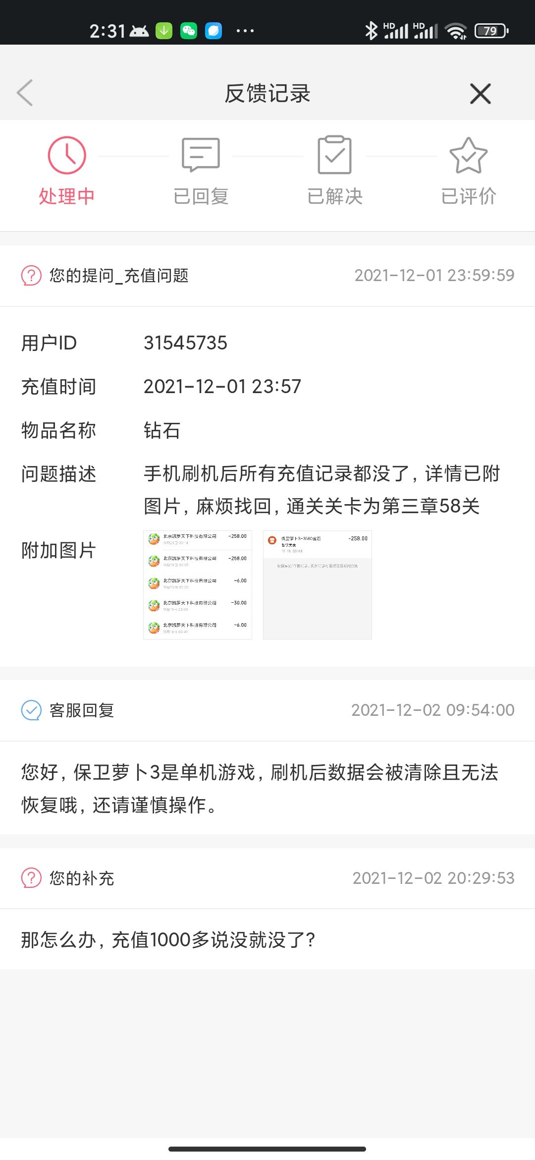 觉着挺好玩,就充值了,前前后后充值了1000多,结果手机前天出了点问题重新刷机,进度和钻石全部归零?归零了联系客服才告诉我谨慎操作?之前充值的时候为啥不说会归零的事?不能补偿回来?登陆的时候我提交过实名认证,设备码后台应该也查得到,不能给处理了?