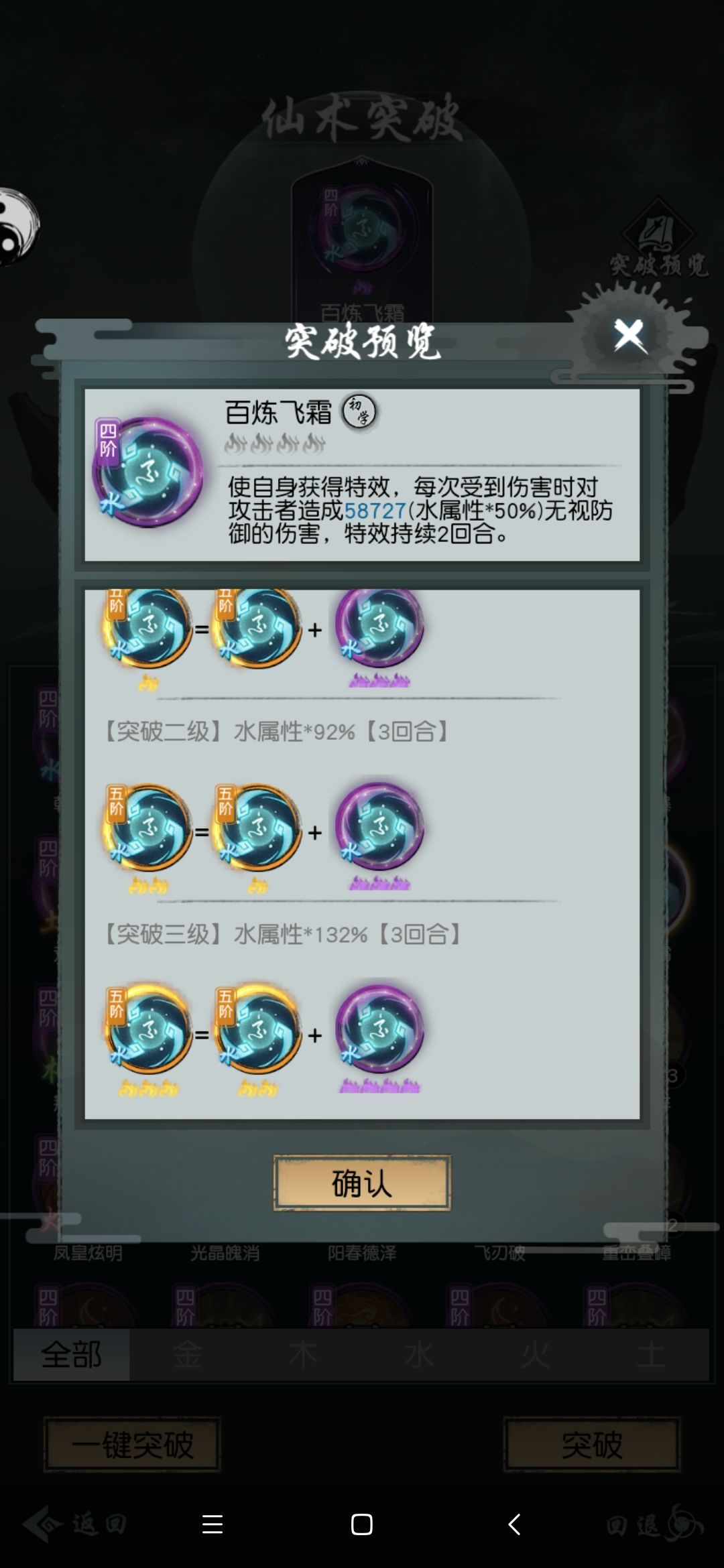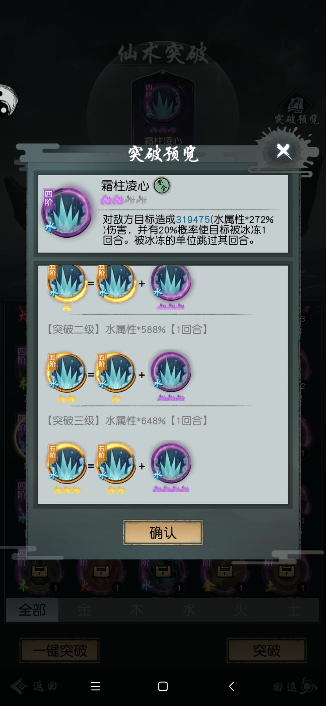 印记流组成之一,与惊涛+水高组成的双印流在镇妖中伤害高出惊涛+叠浪+印记(水高/霜冲)35%左右(注:12/3更新之前),同时由于阅仙阁中每个大境界可买一本,使其养成难度远远低于其他水系技能(完美玄武三/四技能推荐)