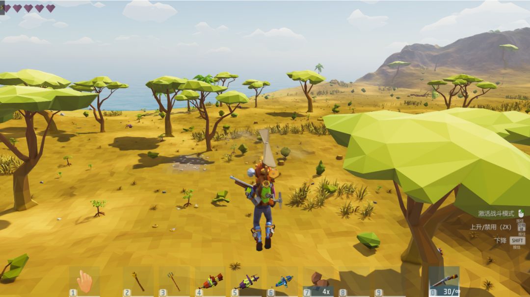 温馨提示:使用飞行背包在空中飞行时,还可以自由使用枪械进行射击哦!追击动物或者打击变异生物会方便许多呢!