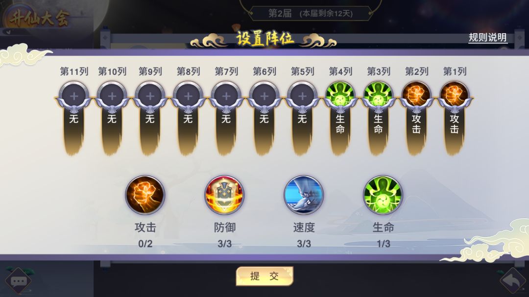 在报名后,宗主也就是我需要进行布阵,根据参赛的人数不同,安排不同的阵位,并且每个位置可以提供不同的属性加成,千万不要以为这就是随便摆摆而已,在战斗力相当的情况下,合理的阵位搭配就是制胜的关键。