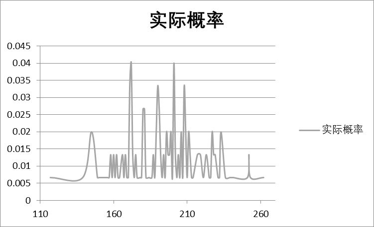 先上结论:实际最值区间是110~260,高概率区间是160~220。收玉概率符合期望为193.6的正态分布。