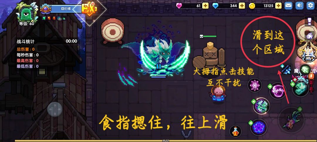 16:按下图操作可手搓平A不断,且能点击技能(注: 大拇指误触平a键会失效)