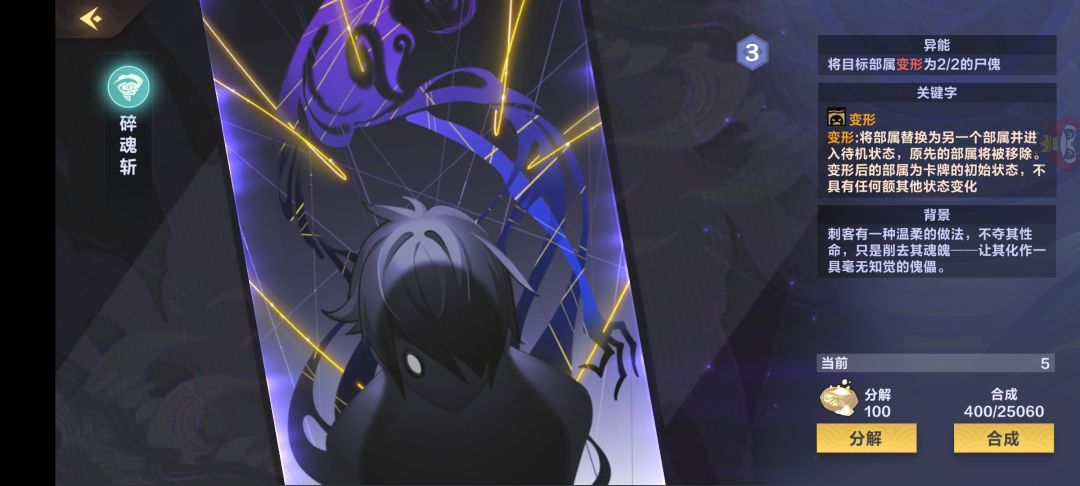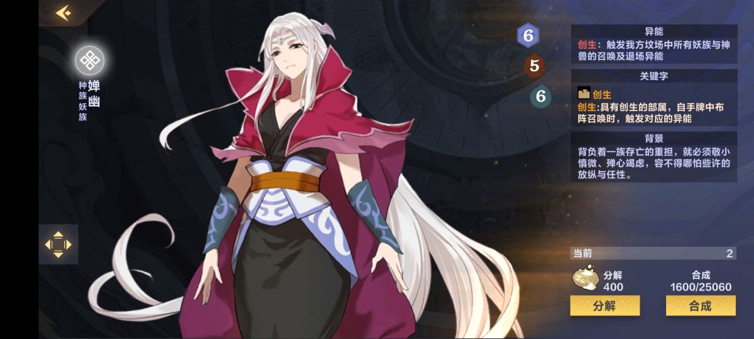 这套卡组的核心思想就是利用各种妖族和神兽的打脸直伤异能,再配合婵幽的异能反复发动,从而达到斩杀对方的目的,以及大小烟露的牛人,配合反复回手,在攻防方面都能给与我们很强力的辅助。下面我来详细介绍一下这套的核心卡牌,以及打法策略。