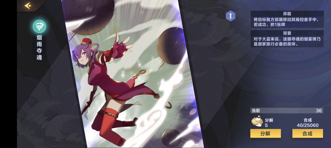 接下来是风系重要的辅助卡,新版本在风系原有的22回手卡的基础上,又加入了烟雨夺魂这张同样强力实用的回手卡,只需要1费不说,回手成功还能抓一张牌,实用性绝对拉满,真的太好用了!区别仅在于烟雨只能回手自己部署,而22是能回手双方部署,但是这个完全没什么问题,因为我们大部分情况都是用来回手我们自己的部署的,尤其是我这套卡牌。注意我这套直接拉满了6张回手,保证够用,基本上我从来没有碰到6张回手用尽了还有拿不下的对局😂