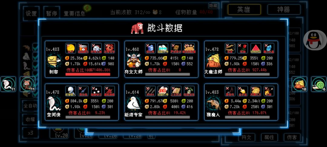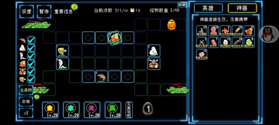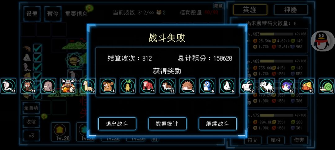 数了一下一共才166个神器,低出我的预期导致后面属性不理想,302的小怪都打不过了,其实风蛋240波的时候就打到19波了,感觉有点卡,没开了,不然还能打出来一个风蛋。