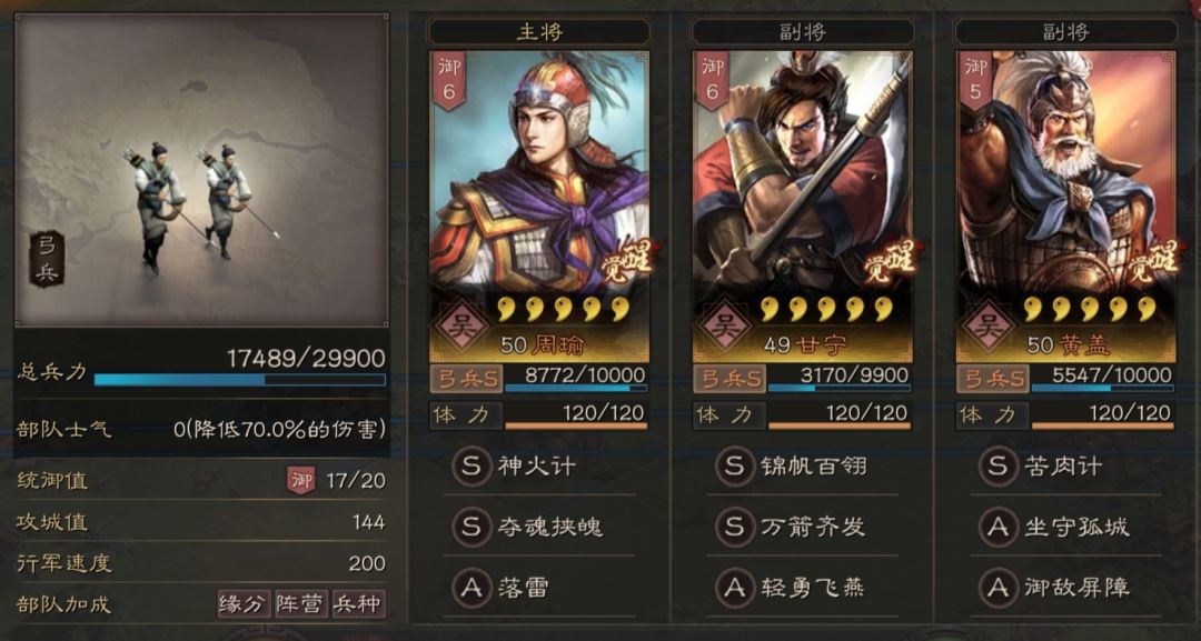不知道这个战法怎么配,甘宁每次都最先死,没s级战法
