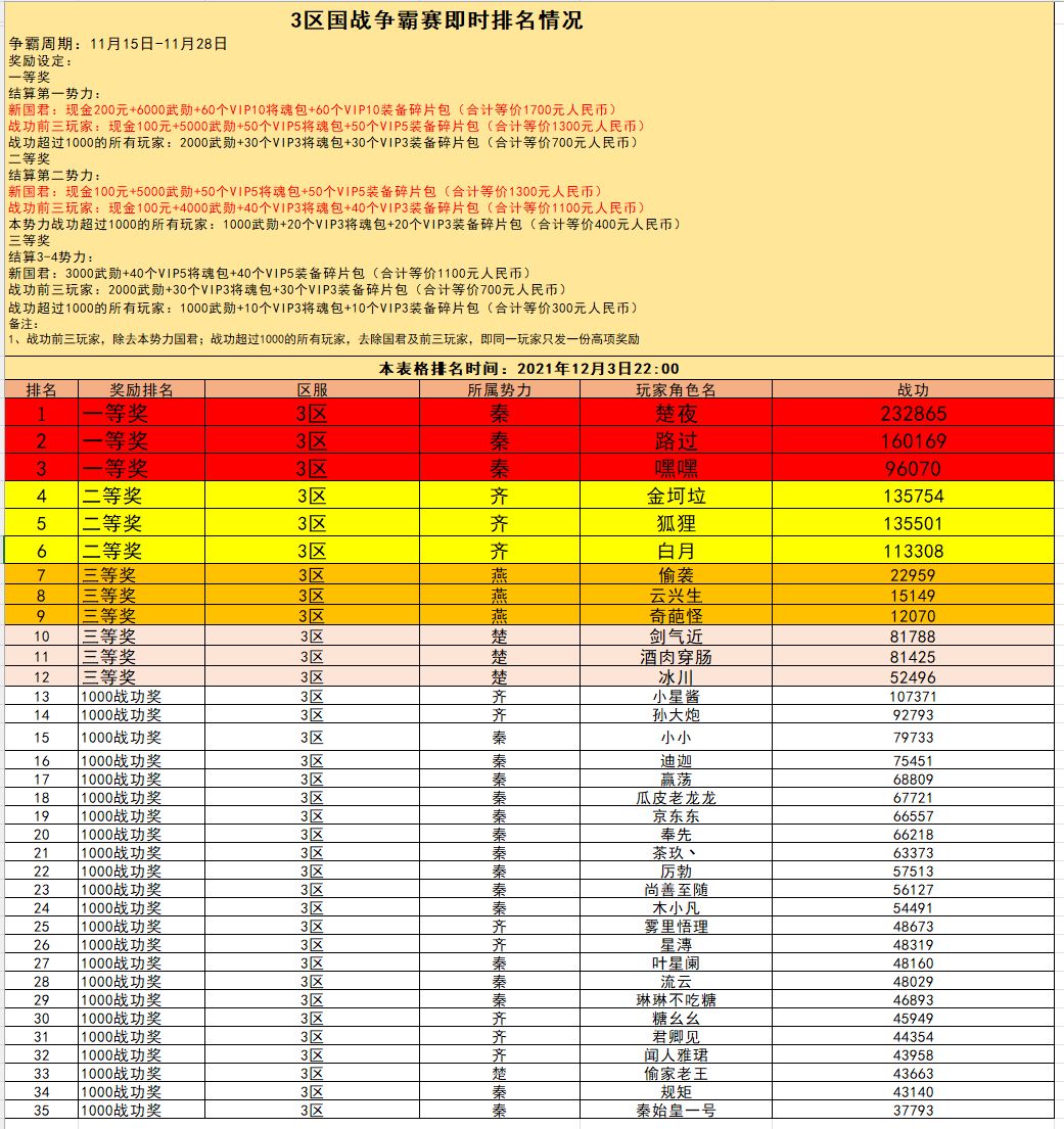 3区国战争霸赛即时战报(12月3日)
