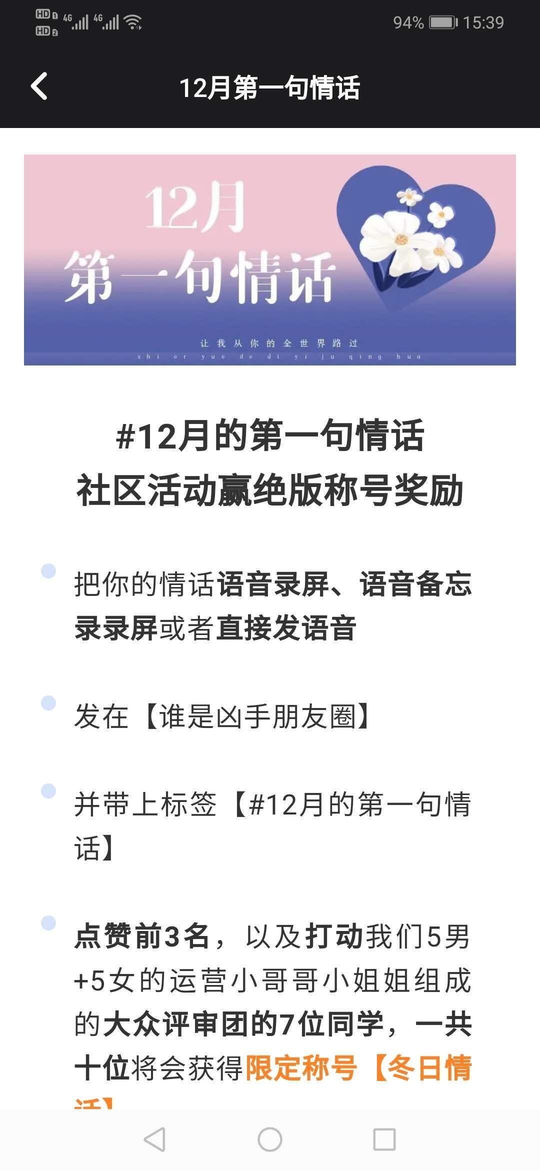 新活动来啦。家人们千万别错过,没对象不代表咱们不会说情话呀,现在活动还能拿绝版称号,全网10个噢,快来参加,活动如下图