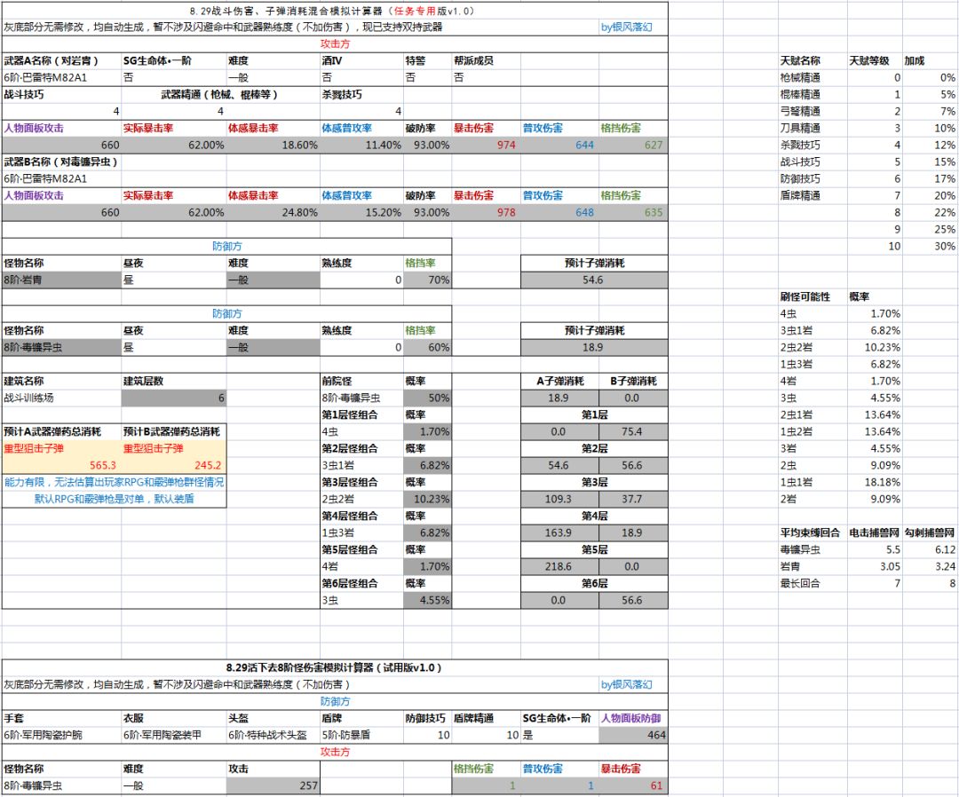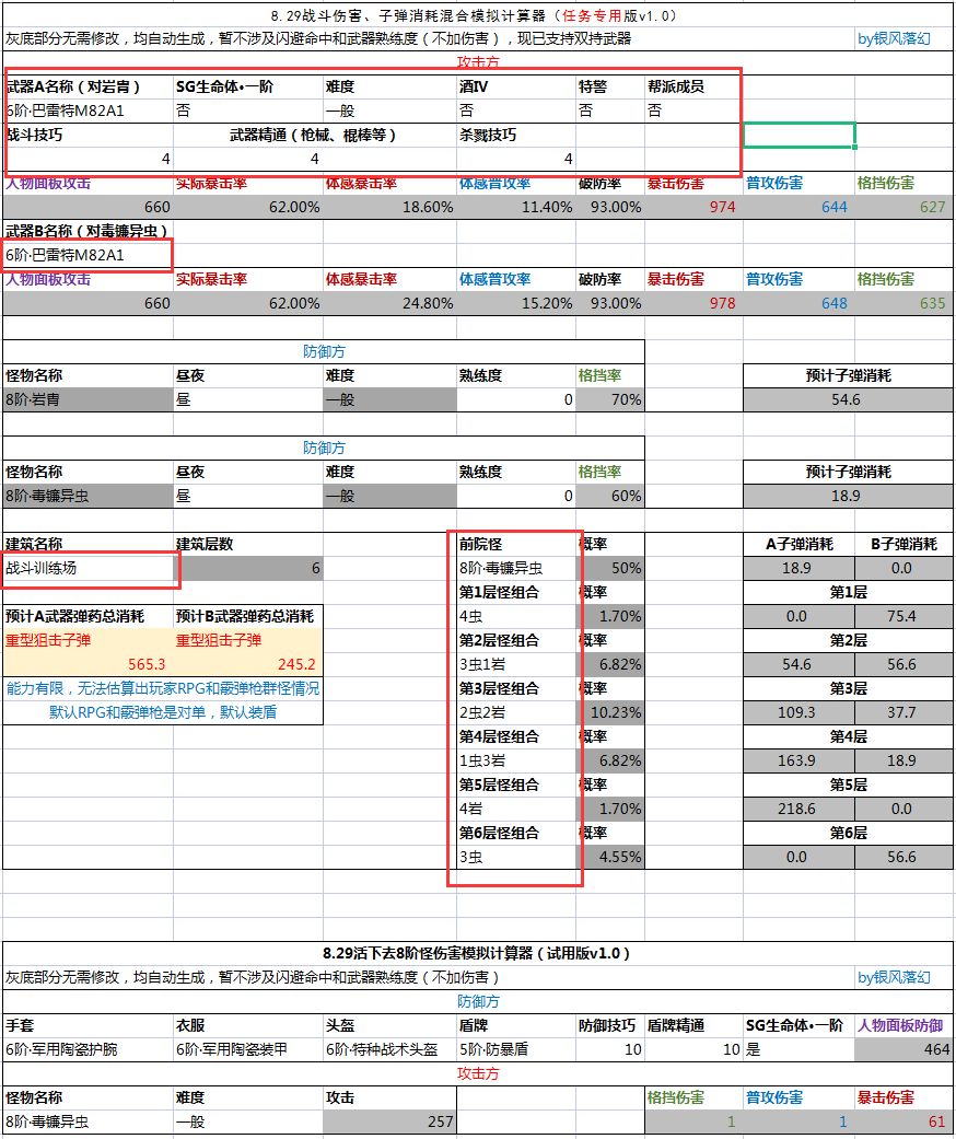 [实用工具]萌新用8阶任务弹药消耗模拟器(支持双持武器)(excel版)