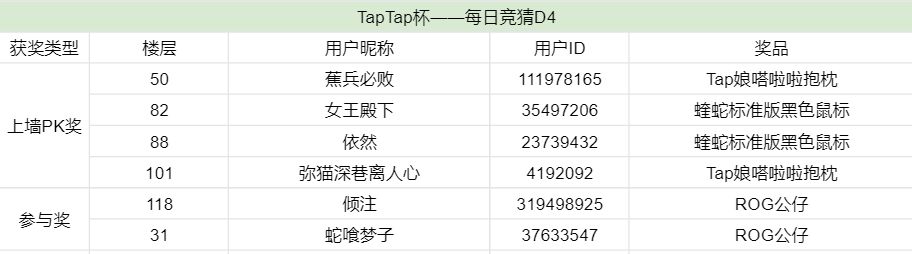 今日竞猜已开奖啦,欢迎大家继续参与明日的竞猜活动!https://www.taptap.com/topic/19758343
