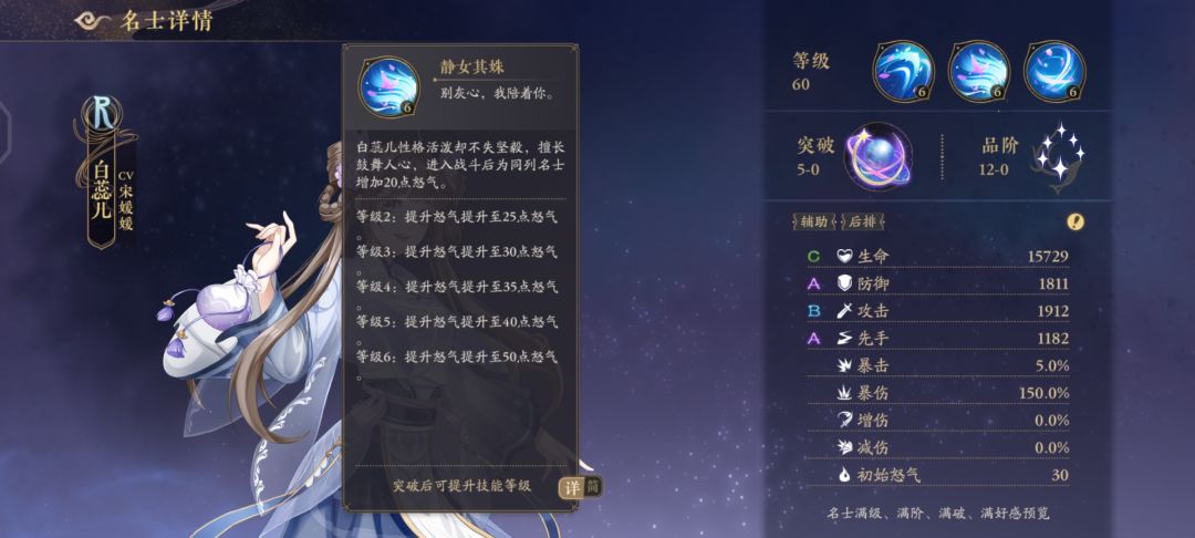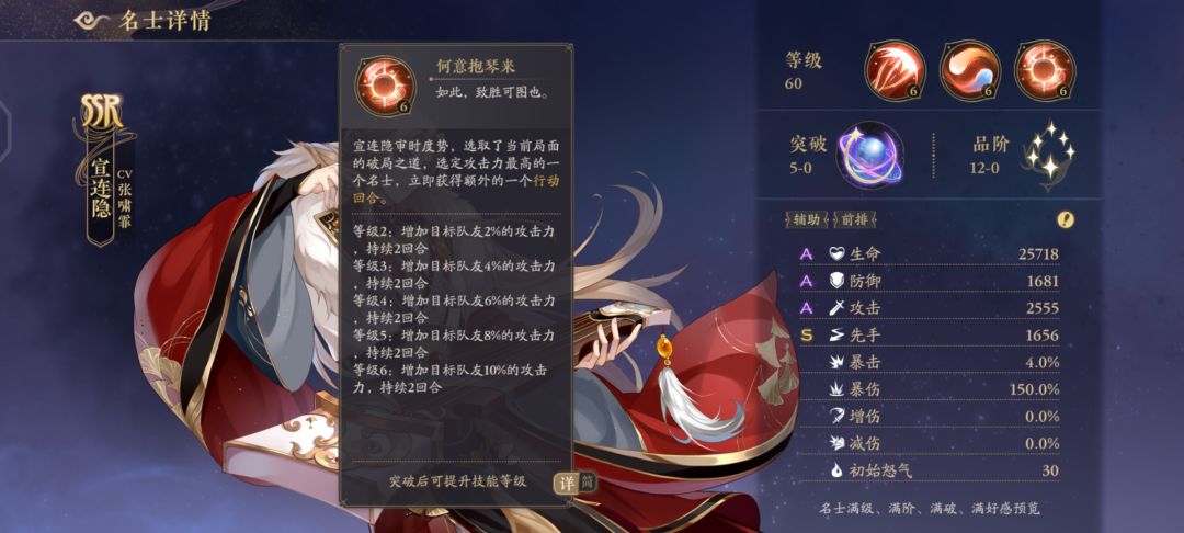 宣连影SSR(大招让我方c立行动,被动回怒,推荐站位3号)