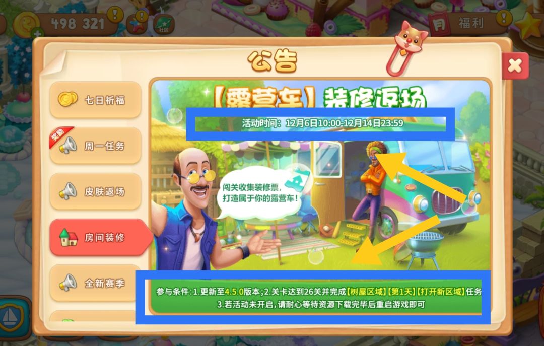 超高人气房间——露营车返场来袭,闯关收集装修票,打造属于你的露营车!