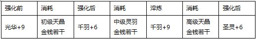 淬炼时羽翼必须装备在身上,淬炼要消耗灵羽和金钱,等级不同消耗的数量、等级的灵羽和金钱(升到后面都是用血泪在升啊!小编我还是吐槽了。。。),而且淬炼有失败几率,+1至+7失败不会降级,+7以上继续淬炼失败会降低一级,也就是,运气和人品不好的玩家们说不好会一直在+7→+8→+7的路上徘徊。。。。