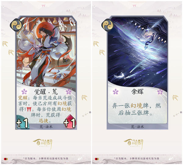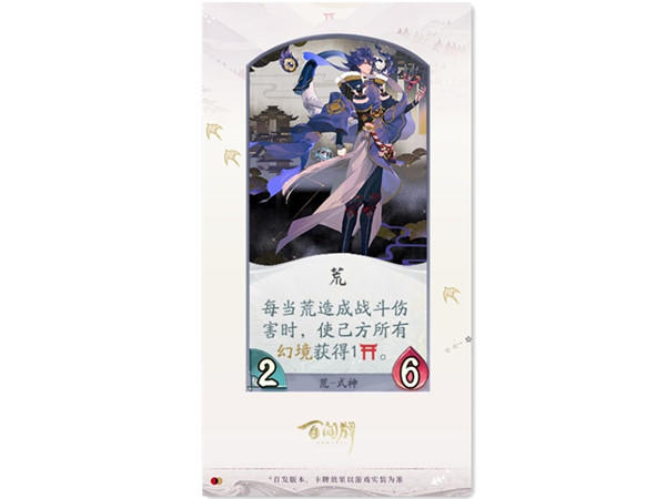 荒是一名典型战斗法师,每当他造成伤害,都会给己方所有幻境增加耐久度,觉醒后使用幻境牌额外获得迅捷。