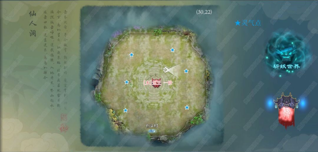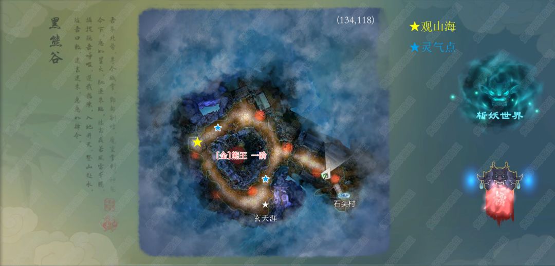 石头村最上方宝箱旁边击杀迎亲童子会出现巡山小妖,跟着巡山小妖走进入冰幽原传送点