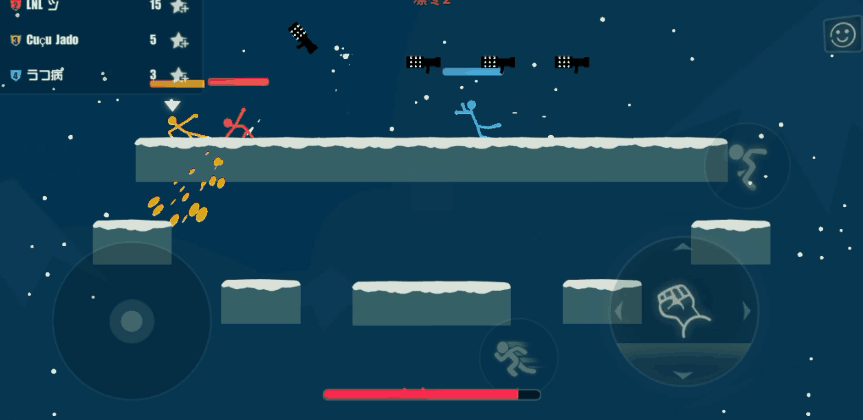 凛冬主题地图最特别的就是地图里的砖块,相较于其他主题的砖块,凛冬的砖块要脆弱得多,普通武器的攻击就能击碎,此时唯一办法就是狂按跳跃键,哪怕在空中停留多1秒,这把的胜算就多一分。