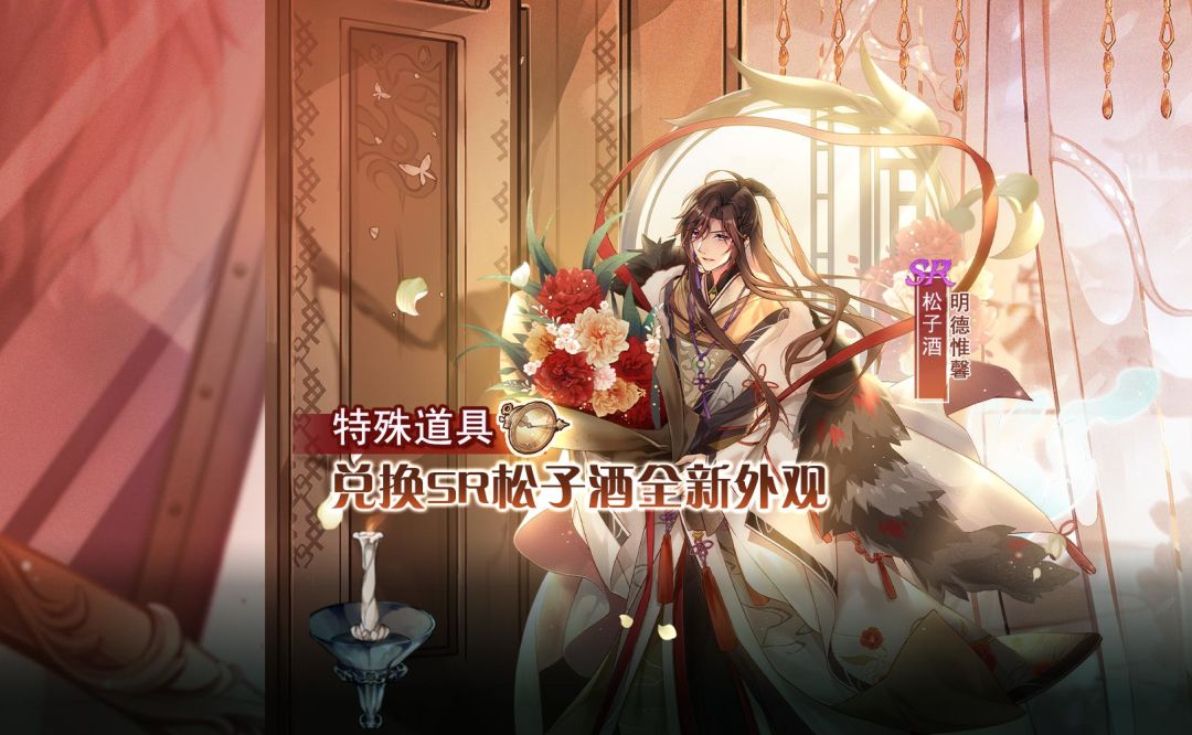 活动描述:周年庆期间,御侍大人可用每天登录游戏领取的特殊道具兑换SR松子酒全新外观-明德惟馨以及海量游戏内珍稀道具。