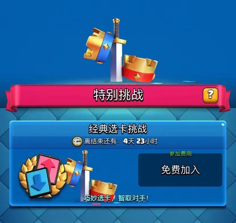 本次主题季的特别挑战为深受挑战者喜爱的皇室经典选卡挑战;巧妙选卡,智取对手!一起在这个CLASH圣诞节激情对战,欢乐出击!赢取丰厚的挑战奖励吧~