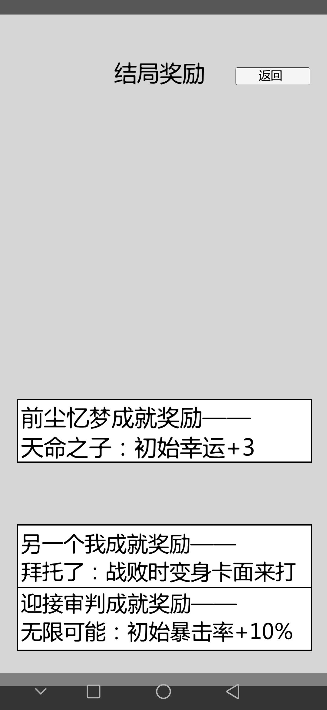 每达成一个结局便会解锁一个成就,而成就会在开局给你额外的增益