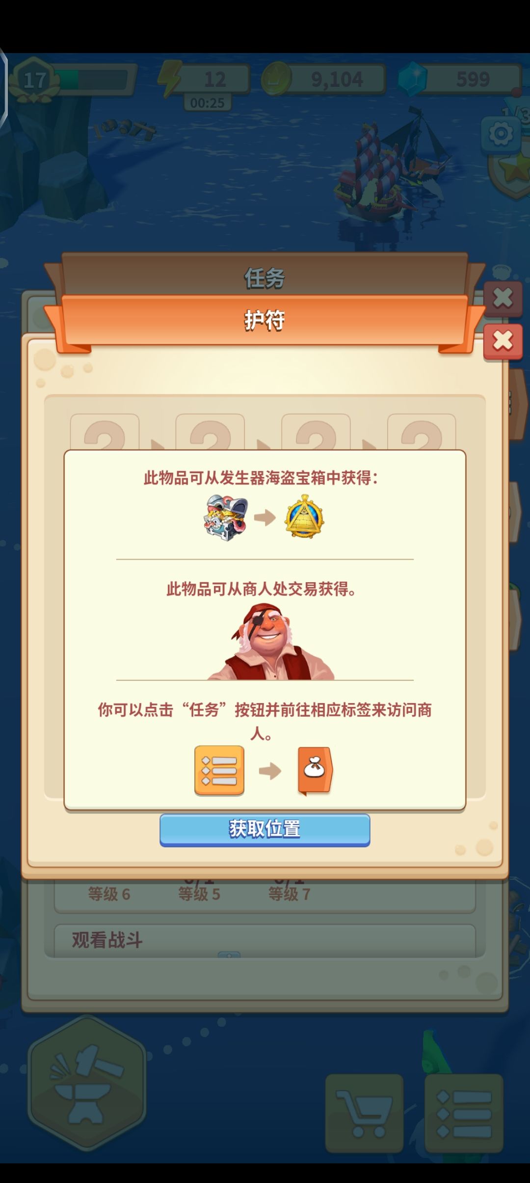 ②护(身)符-海盗宝藏 合成到最高级即可