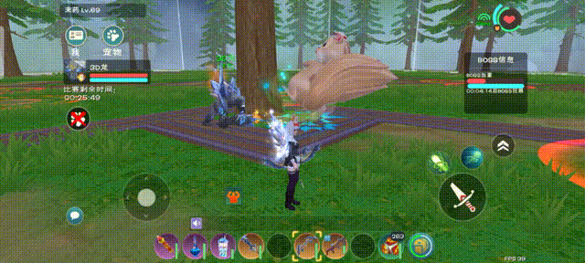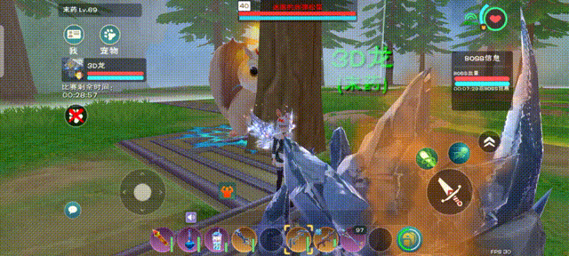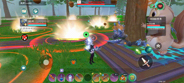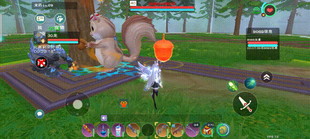 松鼠的普通攻击带有自动瞄准的效果,但是可以被物体阻挡。所以我们要找到一个阻挡物体,在副本里就是树。像这样躲在树后,可以防止普通攻击击中。利用水晶巨人的嘲讽效果,可以把松鼠的仇恨拉在巨人身上,角色就可以在一个小范围内活动。