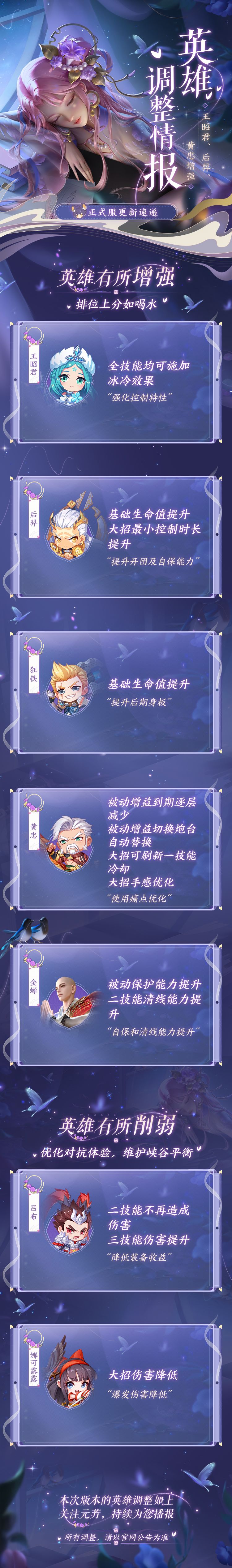 英雄调整情报丨王昭君、后羿、黄忠增强