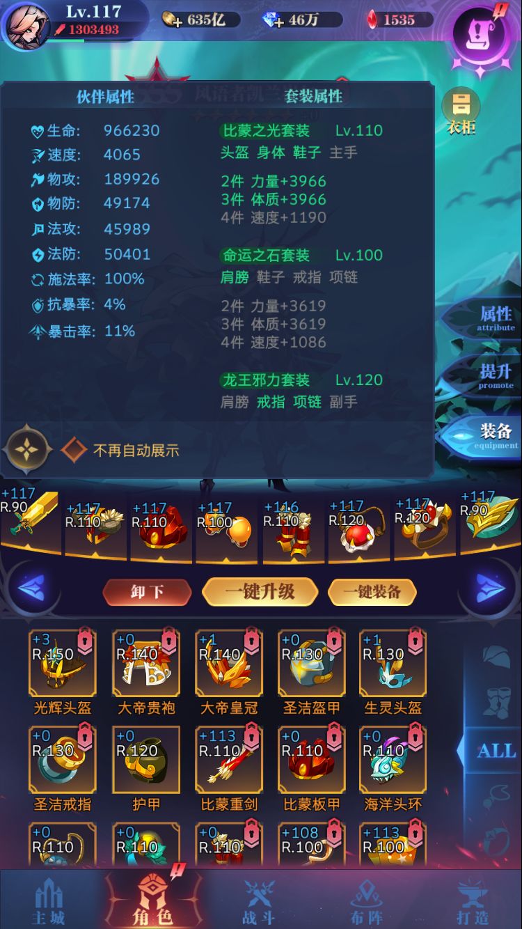 疯狂推图终于毕业,可以当咸鱼躺到转生了,以上是阵容装备,另有女皇星辰伊万天使与元素进行轮换,亡灵队真是安逸坏了。