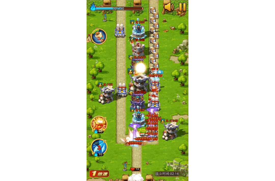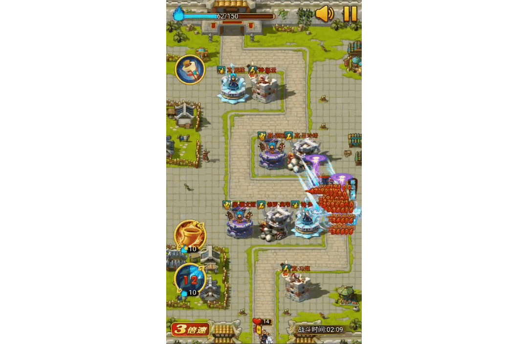 个人建议主炮塔副主将塔;因为炮塔是水月唯一一个可以眩晕短暂强控的塔,他的射程范围、速度、伤害在每次推图的过程中都可能决定这个图的推图时间,个人建议炮塔至少点到高级塔,再主你的主将塔。如图: