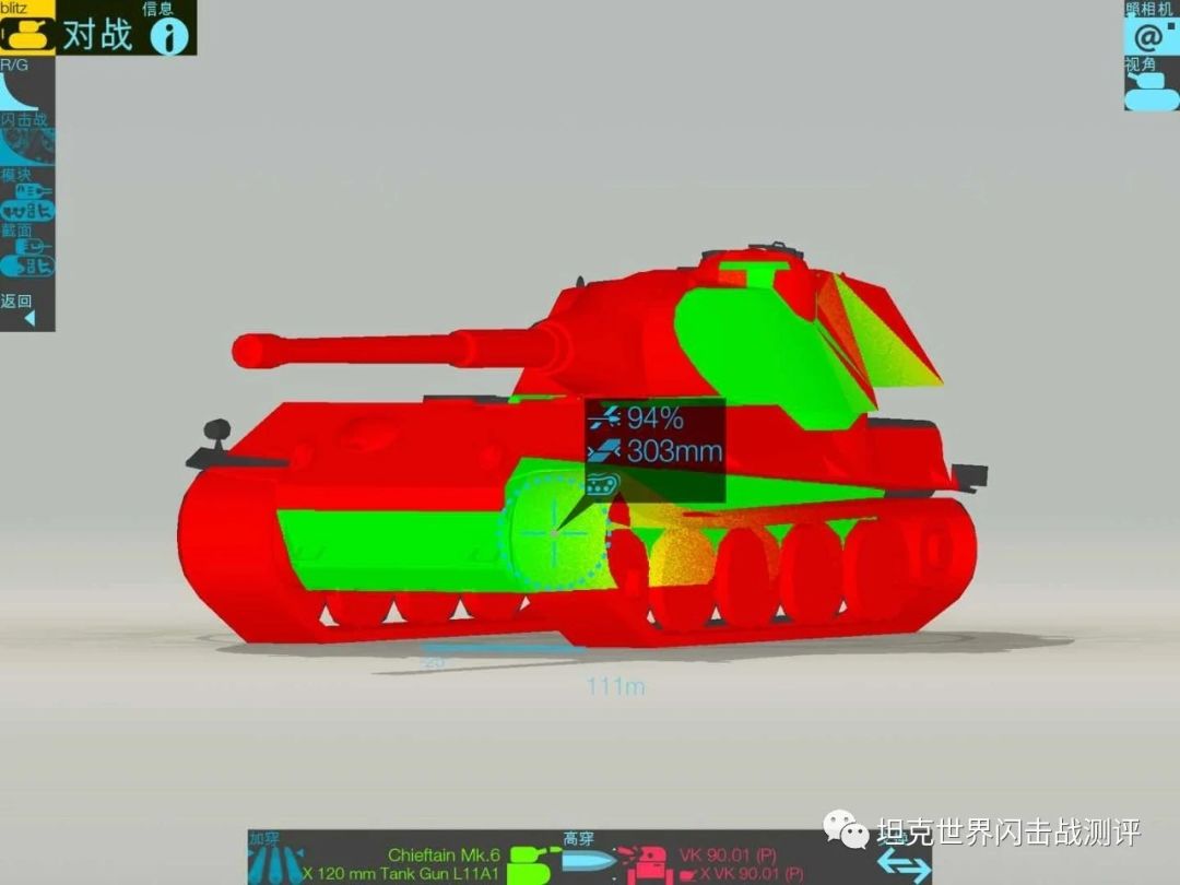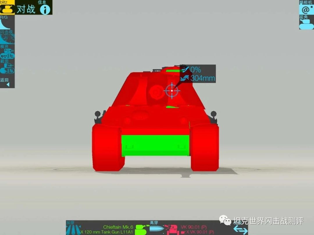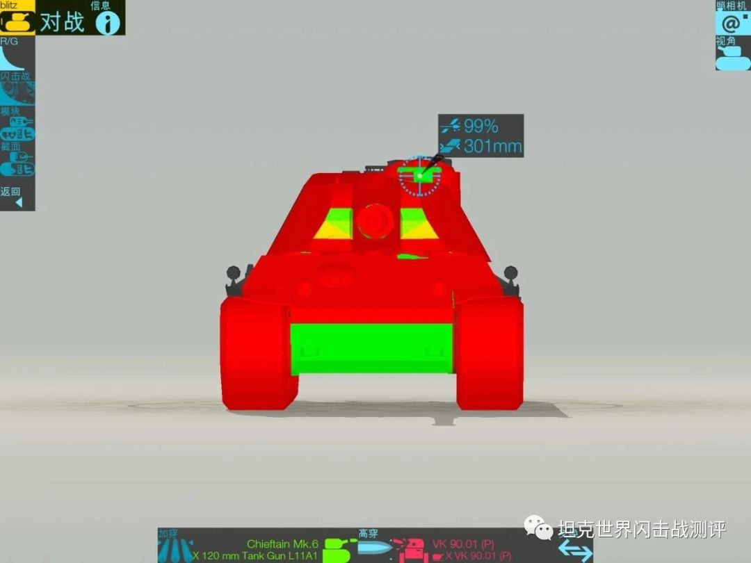各个位置的装甲图,测试用的是酋长的310apcr,可以看到,9001的卖侧能力杠杠的,即使你不小心摆出了一个25度角,你的侧面和导轮依旧坚挺,