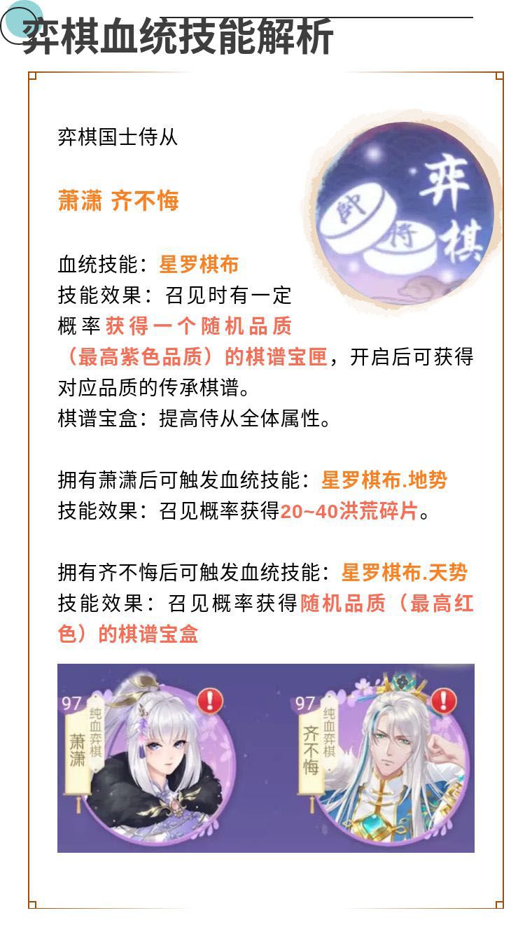弈棋血统的传承之物有风雨棋谱、山岳棋谱、紫霄棋谱、九天棋谱