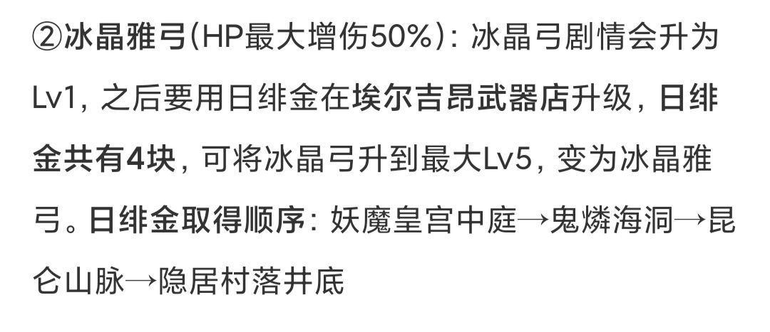 拿到熟练切割需要收集日绯金,强化冰晶弓至5级