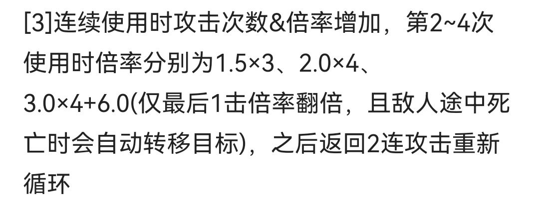 除了剑舞,这个升力技能本身的伤害也是可圈可点的,4下一个循环,从第1击的2.1倍率到第4击的18.0倍率,平均下来也有8.0出头的倍率,这让学妹不仅可以用于水土属性的专武二战,还能逆属性去打风火