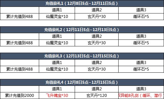 【活动名称】充值豪礼【活动时间】12月8日5点~12月11日5点