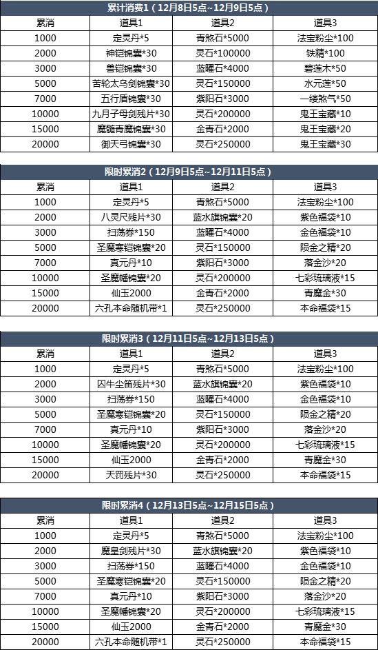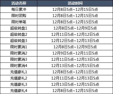 【活动名称】每日累充【活动时间】12月8日5点~12月15日5点