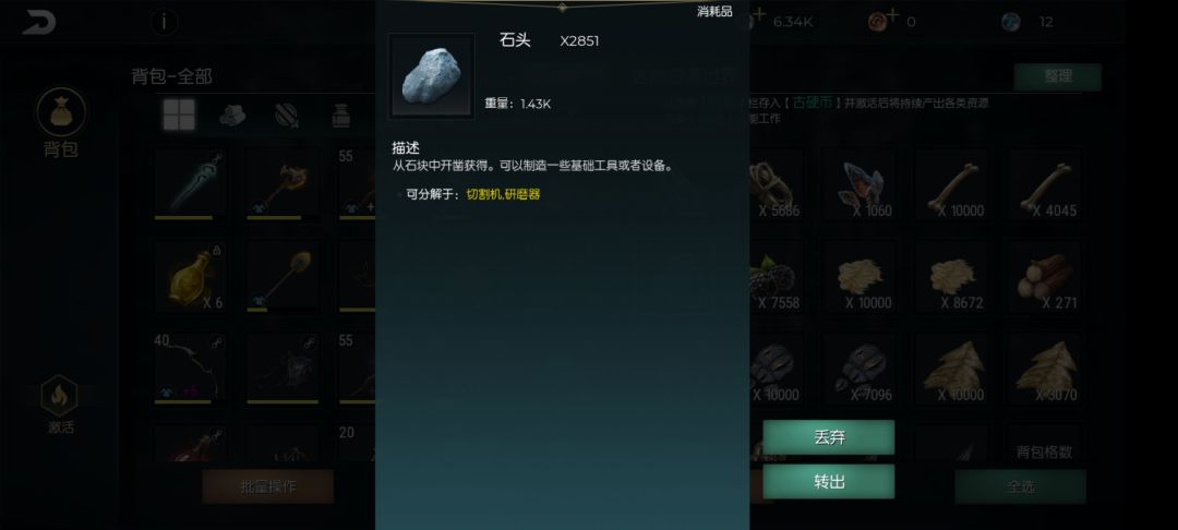 普通石头去研磨器分解,可以获取浮石、石英、硝石之类的必需品,前期需要任务需要,石英是驯化元素宠物的必品,建议大量做。
