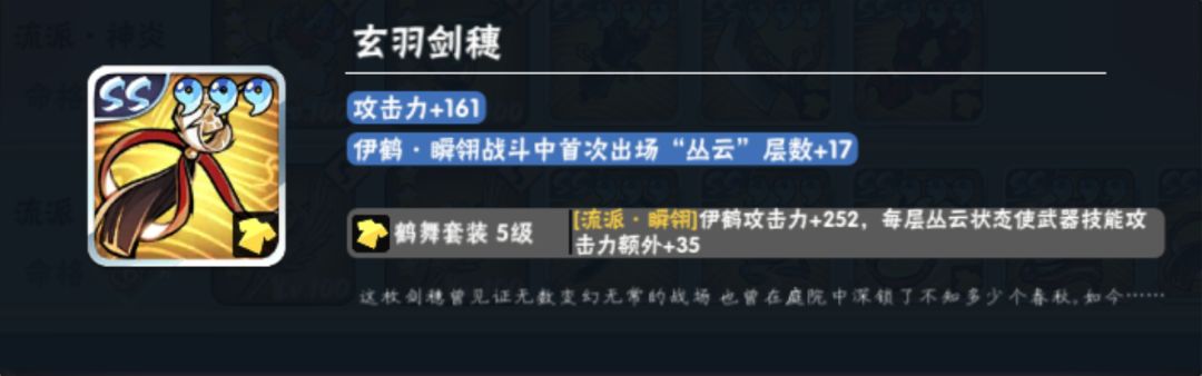 由于前面提到的两种特性〈丛云、血鹤〉,带剑穗的伊鹤具有极大优越性。