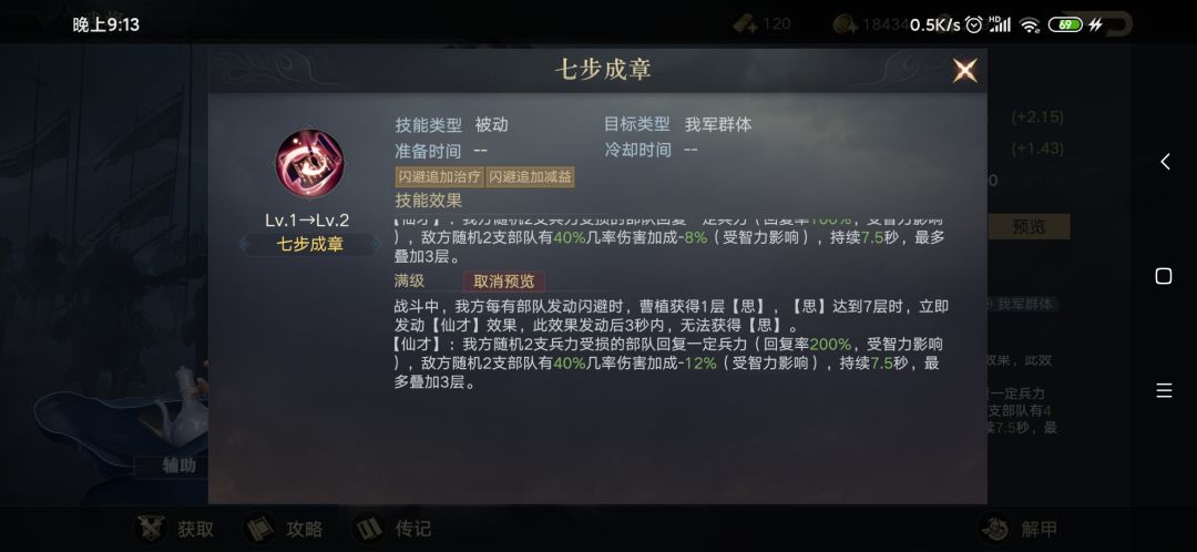 新出的武将曹植4御,个人看法一般,非常一般。七步成章,限制了他的适用范围,而闪避中厉害的人又很少。同时特别被青虹剑克制。7层,在70%理论极限情况下也就是相当于7.5s,回400%血,80%减一人12%伤害加成,并不强。