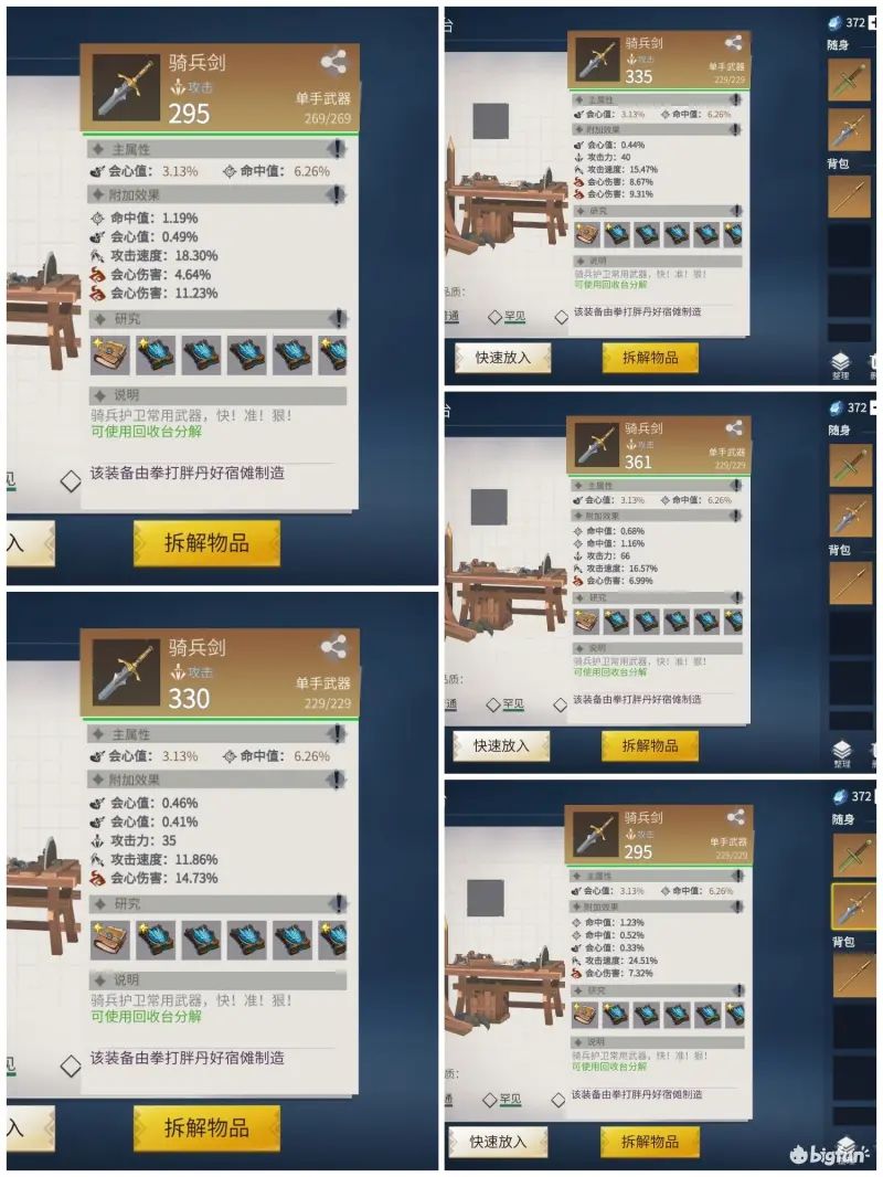 优点:只要材料与50武器秘银剑相同,属性大于秘银剑,上位武器。