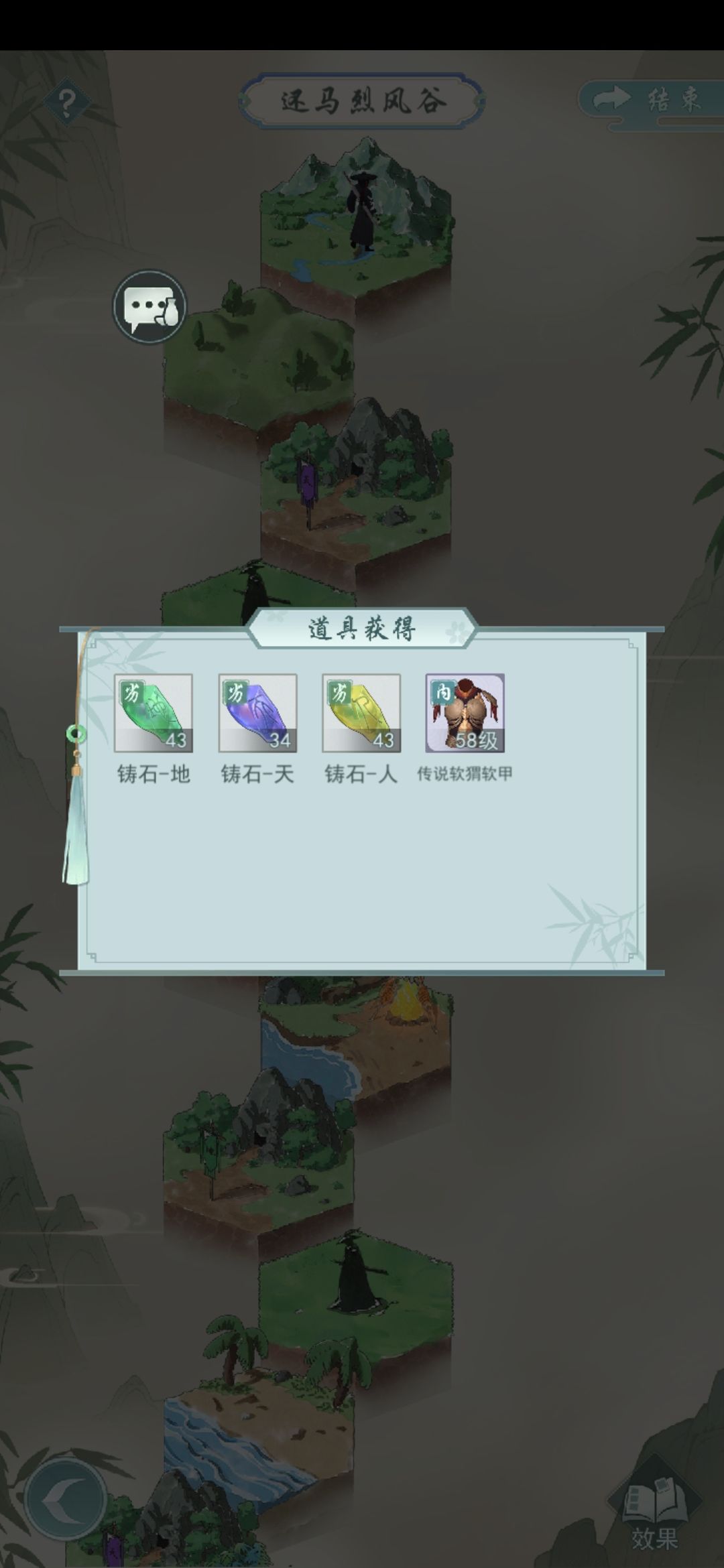 ❷没打完退出禁地不要点右上角结束,点左下角返回。换完装备和武学再进来打。