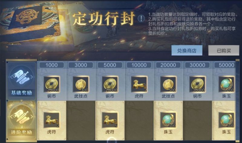 1.折扣券,当主公下赛季再次购买【定功行封】时可享受一定折扣