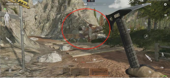 选择地图北部山区,进入北山后,观察周围是否安全,确认安全之后打开地图找到北山酒店西北角停车场。