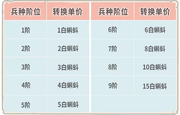 b、所花费的白蝌蚪数量,跟参与转换的『兵种阶位及数量』相关