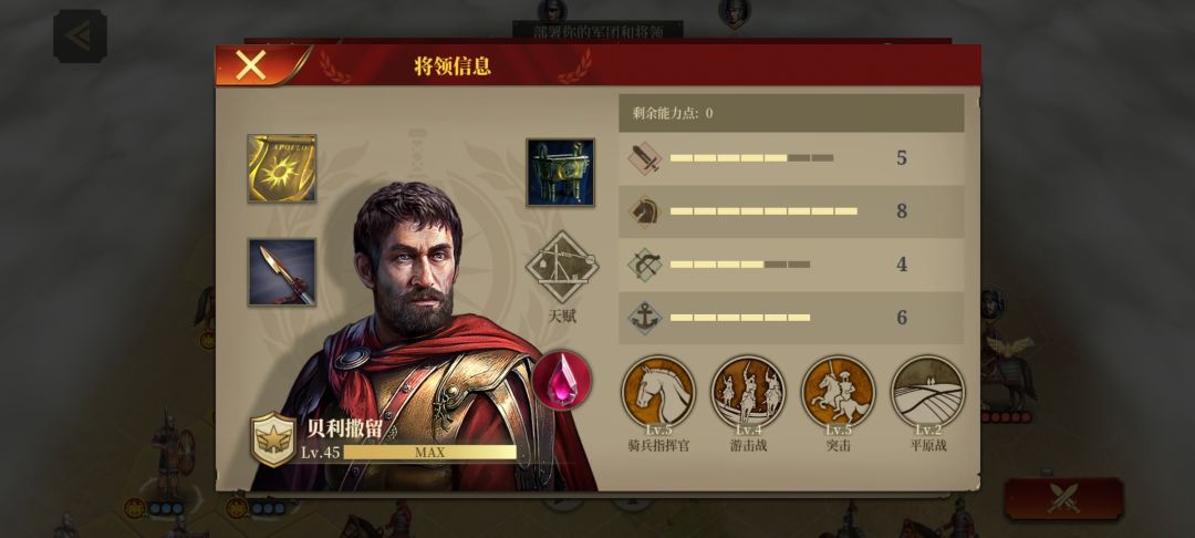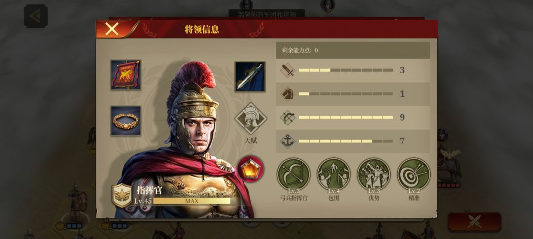 除了将朱比特旗子升到五级解锁伤害减免之外 ,将领实力几乎没有变动,这局注意得是第五关有四个步将,前面选择增益得时候可以选择步将攻击加成,其主要目标就是快速造成伤害,于是选择将领最好选一回合伤害次数多的,这里我将罗马人装在了有攻城锤的马上,有步指的也装上攻城锤。