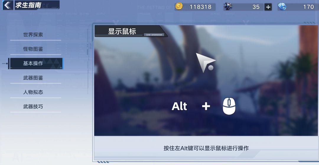 基本分类:世界探索,怪物图鉴,基本操作,武器图鉴,人物拟态,武器技巧,而每一项点开又会有上图那样更详细的分支,所以公测时候大家不妨先点开求生手册进行了解哦。