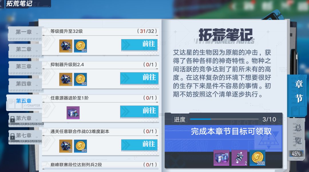 3.拓荒笔记:会通过达成条件的形式来指引大家培养的方向,非常好的内容大家可以打开完成相应任务获取资源。